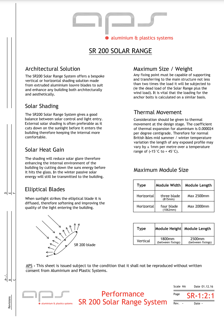 Our Solar Shading is made with premium quality extruded aluminium, an exceptionally strong but comparatively lightweight metal. This gives our shading a long lifespan and resilience; it’ll withstand severe weather conditions with ease and there is little chance of accidental damage.