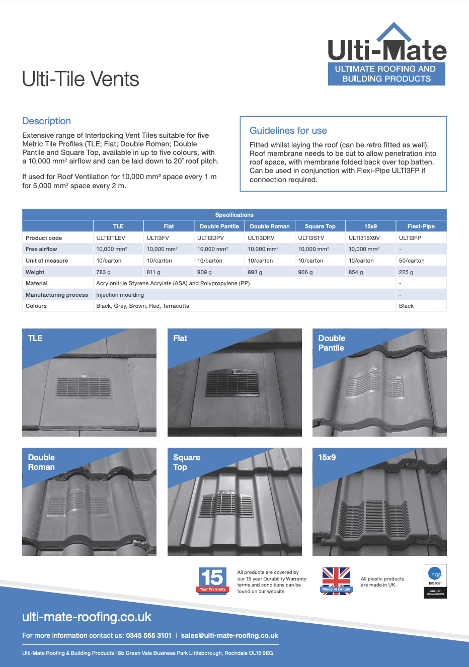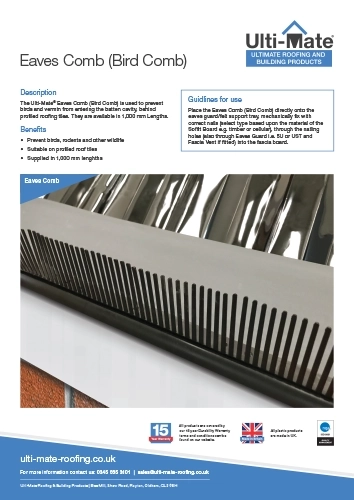 We have a variety of Ulti-Mate eaves ventilation materials available. These are manufactured to a professional standard and allow installations to comply with BS5250. This includes our fascia vents, soffit vents and eaves combs, all of which provide effective protection against external factors while still maintaining airflow. For example, the fascia vents can be fixed over fascia boards and are reliably long-lasting, but will also allow moisture to escape and prevent issues with rot or mould.